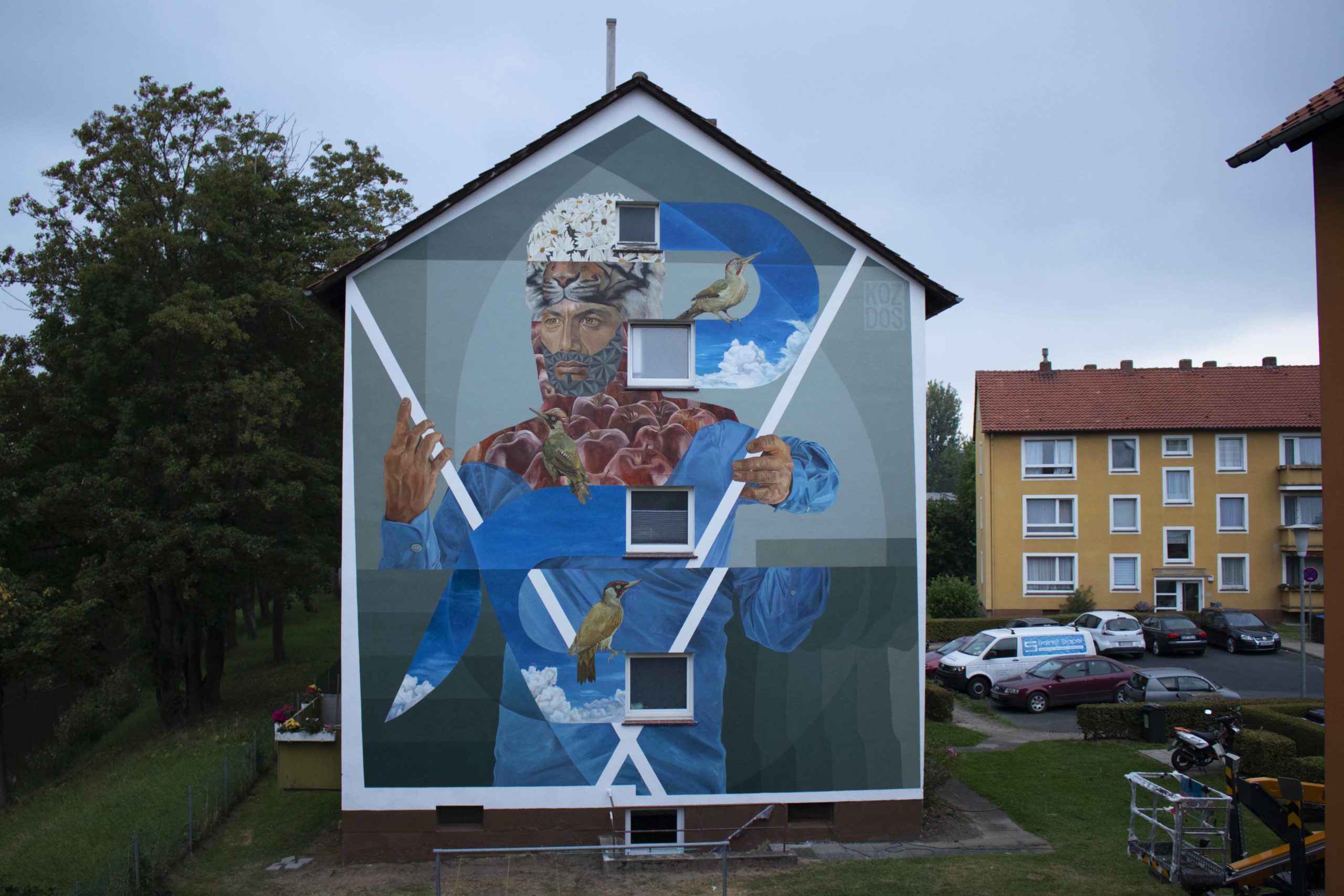 Koz Dos est né à Caracas au Venezuela. et débute son expérimentation du spray par du wildstyle vandale. C’est au fur et à mesure du temps que l’artiste se dirige vers le graffiti figuratif – il découvre un style et une technique plus complexe. Son travail actuel pourrait être défini comme narration conceptuelle et symbolique, mélangeant l’humain et le naturel. Koz Dos essaie de donner au spectateur un point d’entrée à la réflexion sur des sujets tels que la coexistence et l’harmonie, à travers les images figuratives qu’il crée. Ce dialogue visuel permet une enquête approfondie du conflit et nous prouve que l’art peut le discours et construire des ponts de possibilité. Les réalisations de Koz Dos sont visibles dans de nombreux pays du monde : Allemagne, Espagne, Chypre, Roumanie ou encore Etats-Unis.